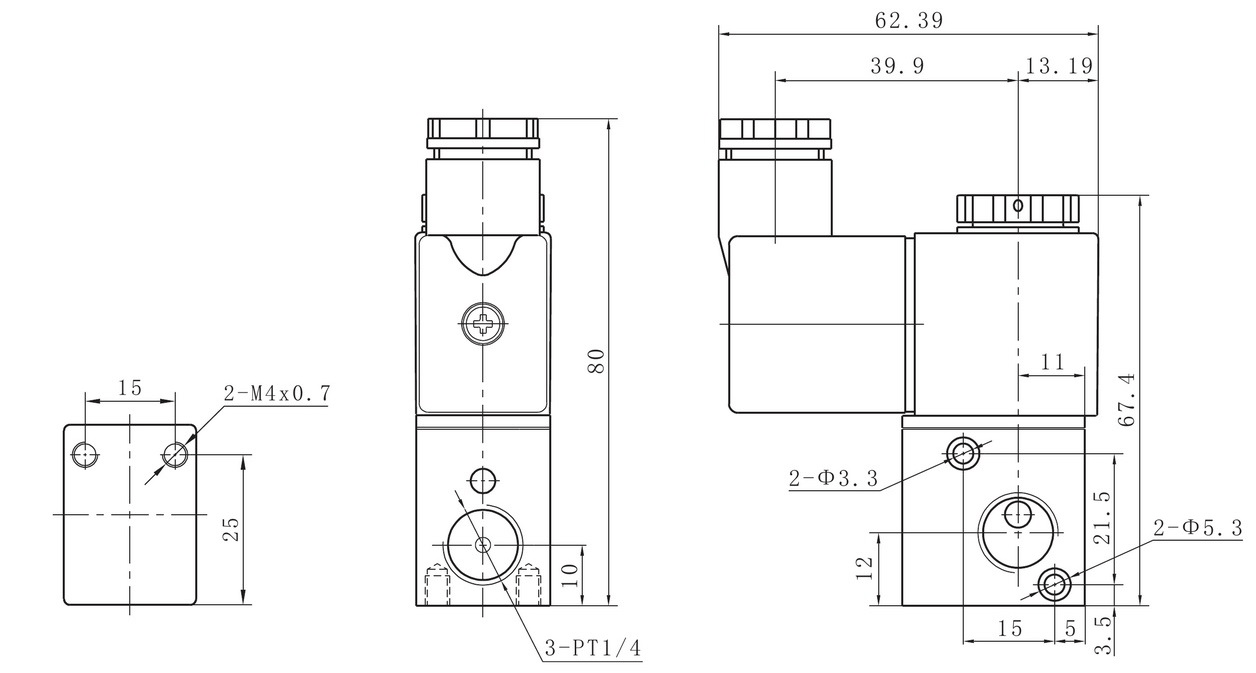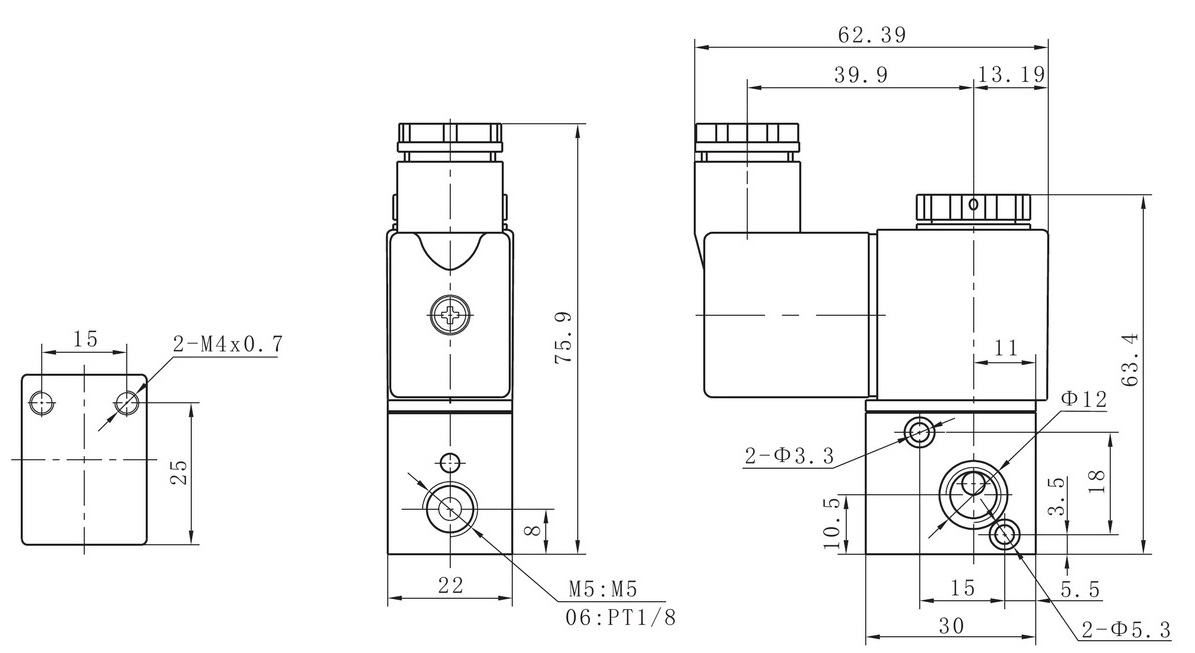 3V1-M5/06 DC 12V/24V 3-Way 2-Position Normally Closed Electromagnetic Air Valve