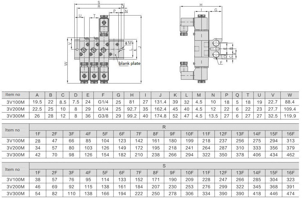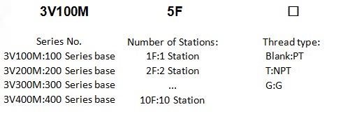 1-10 station manifold for 3V100 3V200 3V300 3V400 sereis pneumatic solenoid valve