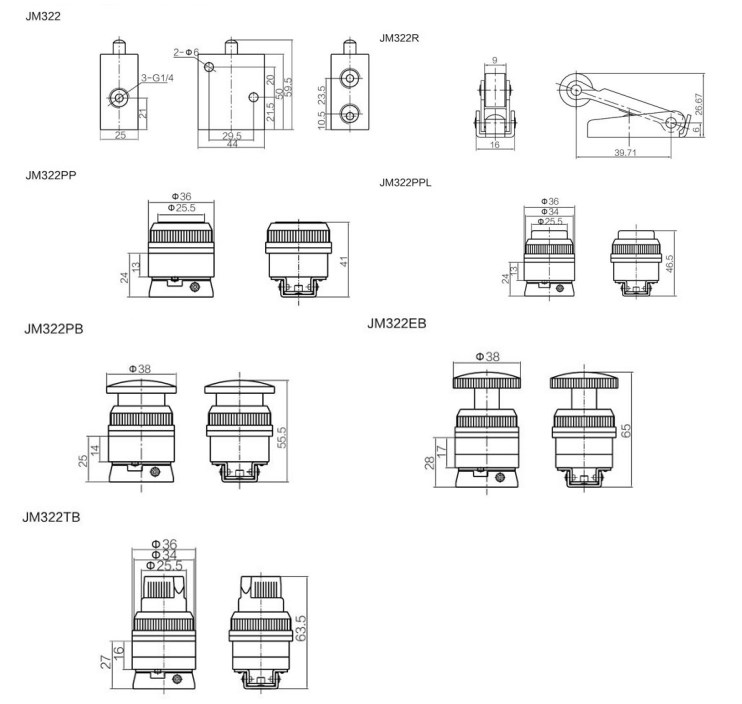 JM322 series Rotary Knob Mushroom push button Electro Mechanical Valve